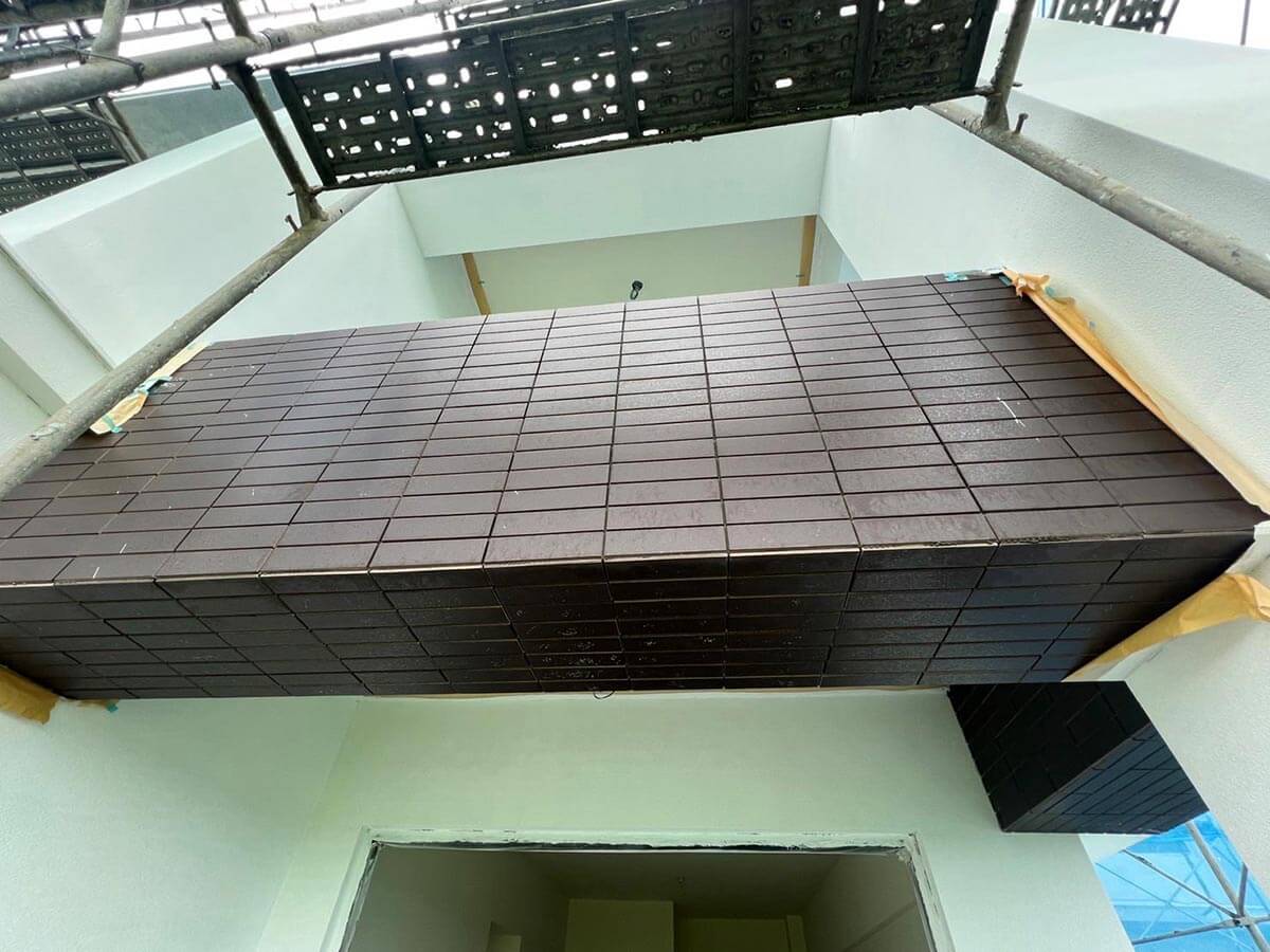 施工現況:外牆磁磚施作